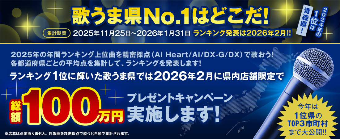 対象曲:DAM年間カラオケランキング2025 プレゼントキャンペーン課題曲(全170曲)