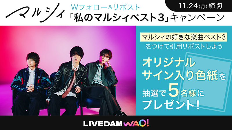 2025年11月7日(金) ~ 2025年11月24日(月)◆ 応募方法 ◆ ①マルシィ公式(@marcy0910)とDAM公式(@DAMch_Official)をWフォロー