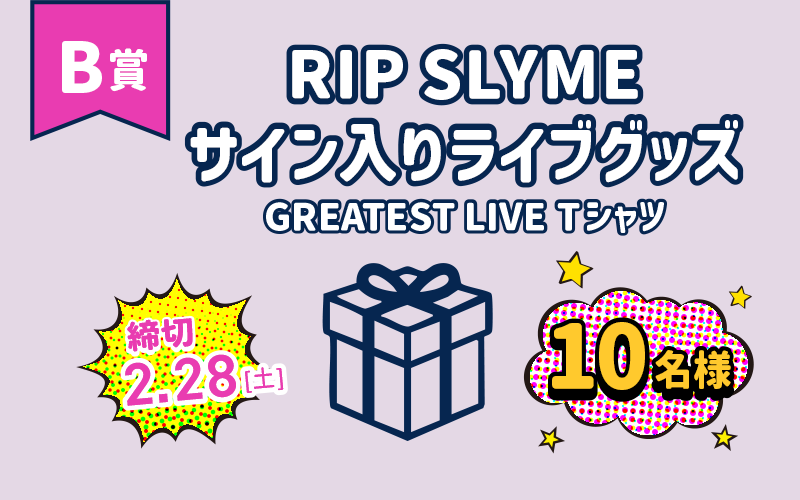 ※RIP SLYMEサイン入りライブグッズの当選のご連絡は賞品の発送をもって代えさせていただきます