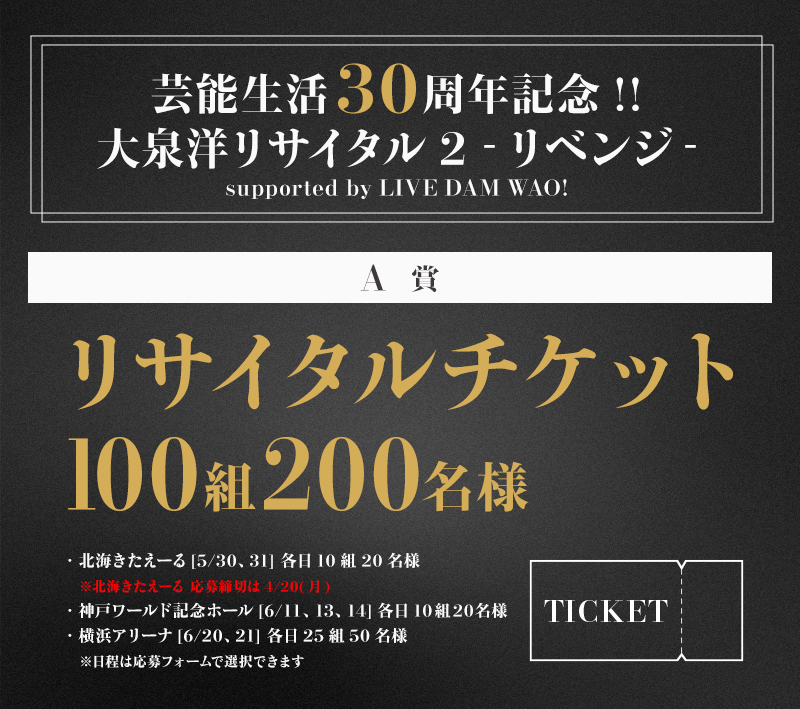 リサイタルチケットが100組200名様に当たる!大泉 洋コラボキャンペーン[LIVE DAM WAO!限定]