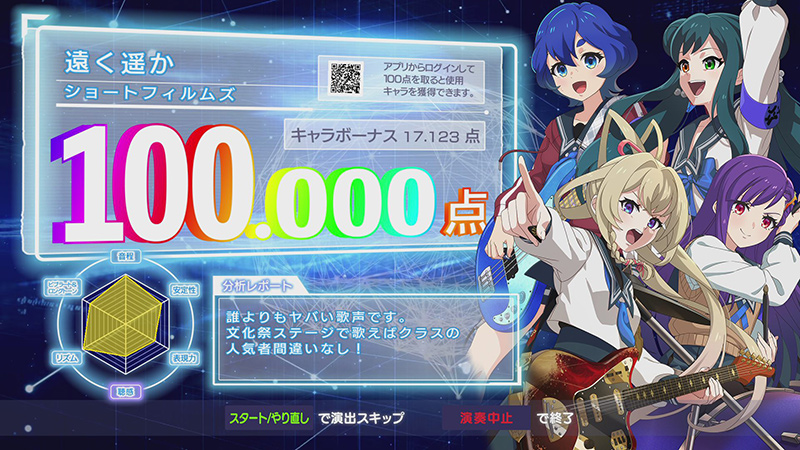 結果画面では、精密採点Ai Heartで採点された点数に、アクションと特性による加点を合わせて総合得点が表示されます。