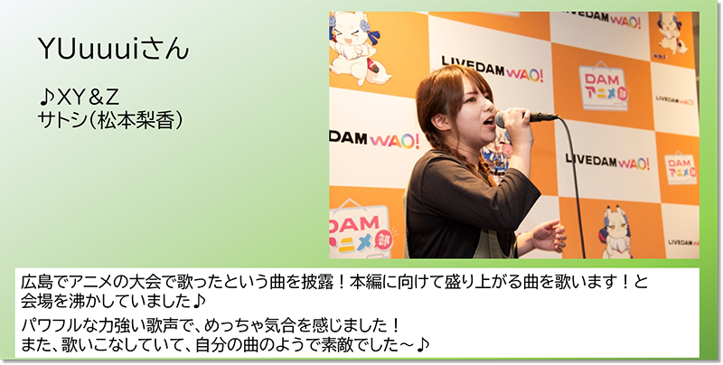 アニメ部のグッズを着てくれたり、うちわを手作りしてくれたりとアニメミュージック愛だけでなくDAM愛もみんなから感じられて、めっちゃ嬉しかったよ♪