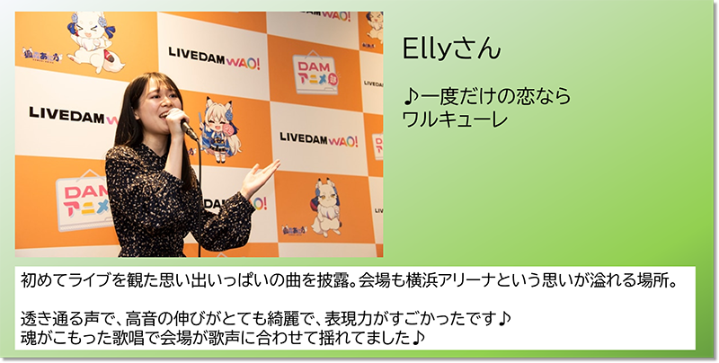 —Ellyさん:アニメミュージックを人前で歌うのが初めてだったので、すごく緊張したんですけど、歌いやすい空気を作ってくれてとても楽しく歌うことができました。