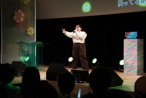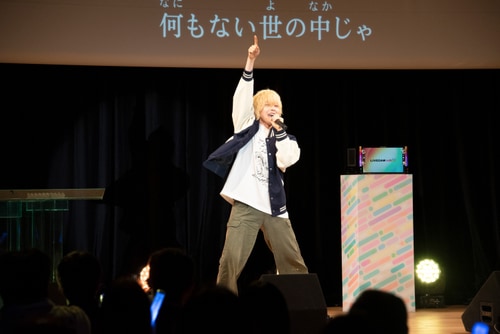 影ナレだけではなく、会場をあおりつつなんと狐森あにかも1曲披露。可愛く透き通る声で会場を一気に魅了した。