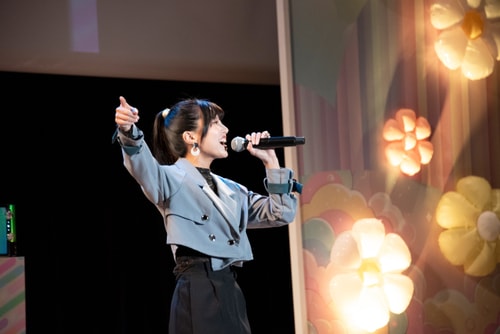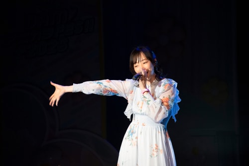 青いペンライトが揺れる中、その歌声が会場全体に広がり、イベントの幕開けにふさわしい華やかな盛り上がりに!
