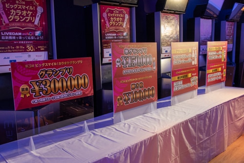 グランプリは賞金30万円とトロフィーが贈られるほか、全国の対象店舗で歌唱シーンが放映される特典を用意され