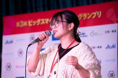 準グランプリをいただいて、正直なところ悔しさよりも嬉しさのほうが大きいです。まずは無事に終えられて、ほっとしています。今回この大会に参加したきっかけは、カラオケに行った際に偶然大会の案内が流れてきたのを見たことでした。そのときに「出てみようかな」と思い、応募を決めました。選曲については、特に2曲目に強い思い入れがあります。18歳、19歳の頃から歌のステージに立つ活動を続けてきましたが、最初の数年間は思うようにいかないことが多く、苦しい時期もありました。今回歌った曲は、そんな自分自身に向けた応援歌として選んだものです。