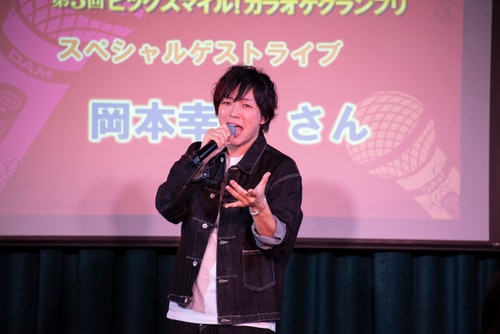 今回のカラオケグランプリには、スペシャルゲストとして初代DAM★ともマスコット、歌手の岡本幸太さんが登場。