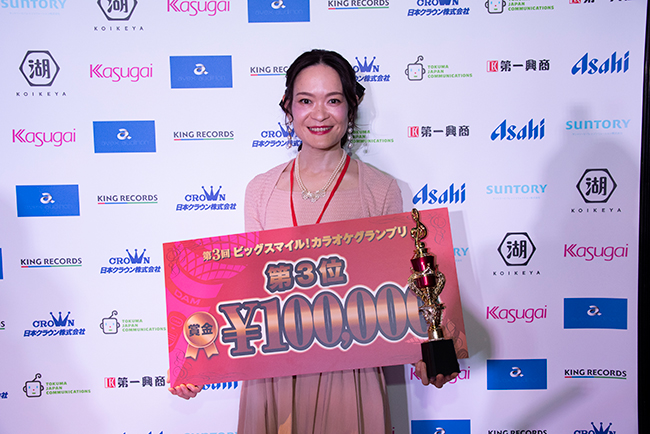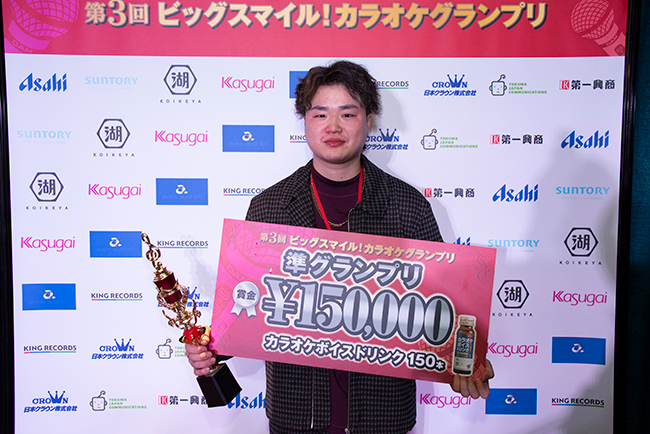 準グランプリには賞金15万円とトロフィー、さらにカラオケボイスドリンク150本を進呈。第3位には賞金10万円とトロフィーが贈られる。