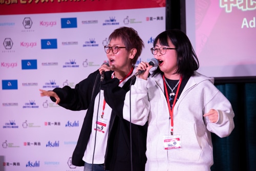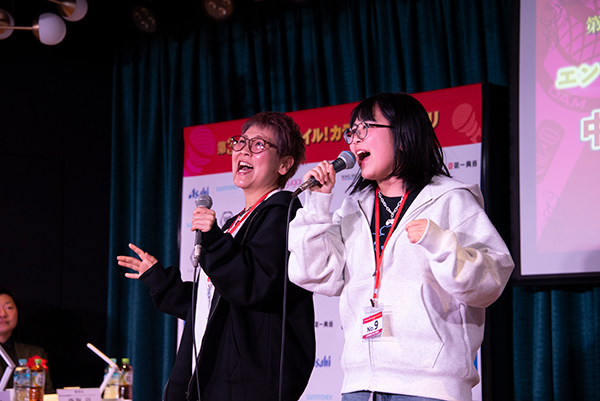 前半戦に出場したファイナリスト達が、客席後方から見守るというカラオケの絆もみられ、会場は熱くひとつになった。