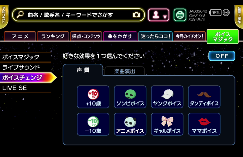 自分の声を特殊ボイスにワンタッチで変えられる機能です。