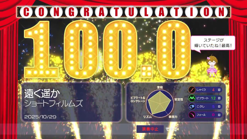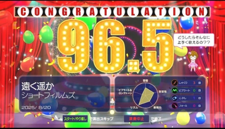95点以上を取ると風船の特別演出が、そして100点や特定点数では豪華な花火の演出が楽しめます。